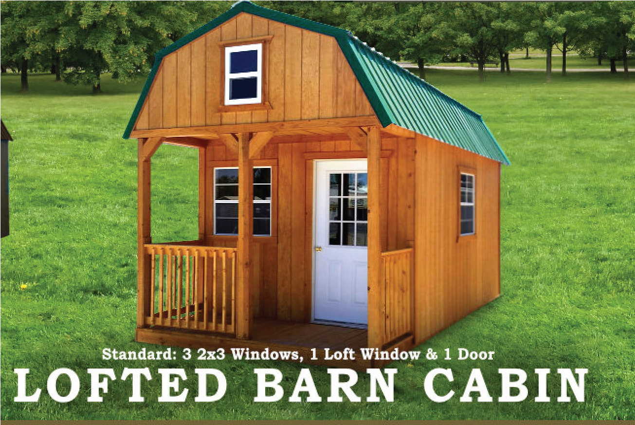 The Lofted Barn Cabin is a great upgrade of the regular cabin model. This model comes standard with 3-24″ x 36″ single pane windows, a 9 lite door, and a loft on the front of the cabin. A loft window is also available for this model.